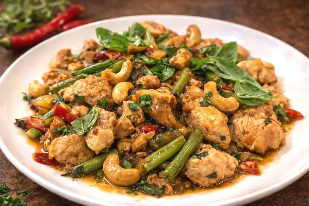 Poulet thaï sauté au basilic et aux noix de cajou